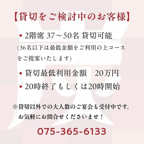我们接受京都河原町地区私人聚会和大型宴会的预订!我们宽敞的空间是举办特殊聚会的理想场所。